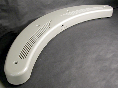 One champagne colored endcap to be used on the foot-end of the bench on the SunStar® commercial tanning beds when body fan is installed. Endcap contains holes for body fan mounting.