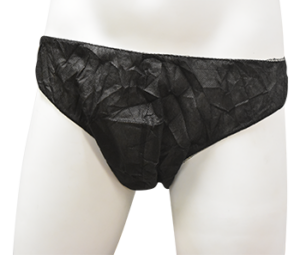 Disposable men’s brief for sunless tanning. Size: Large/