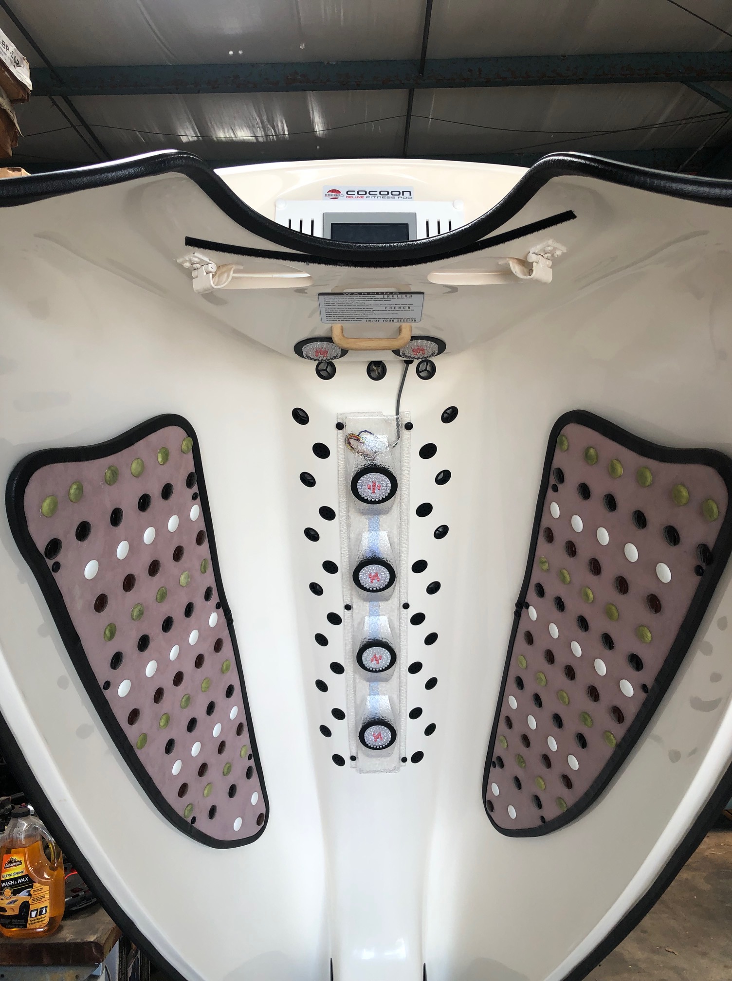 Used Cocoon Fitness Pro Sauna Pod- Financing Available Call! 08/2019 Date of Mfg. Price includes free shipping to any of the lower 48 States and installation to certain states, call for more details. You will also receive the Owner’s Manual, Salt Block, Neck Drapes, Exercise Handles with Bands. 30 Day Warranty on all parts. This unit also has the upgraded Stone Infrared Wings which is a $500 value. It does not include the optional Raised Pedestal!
